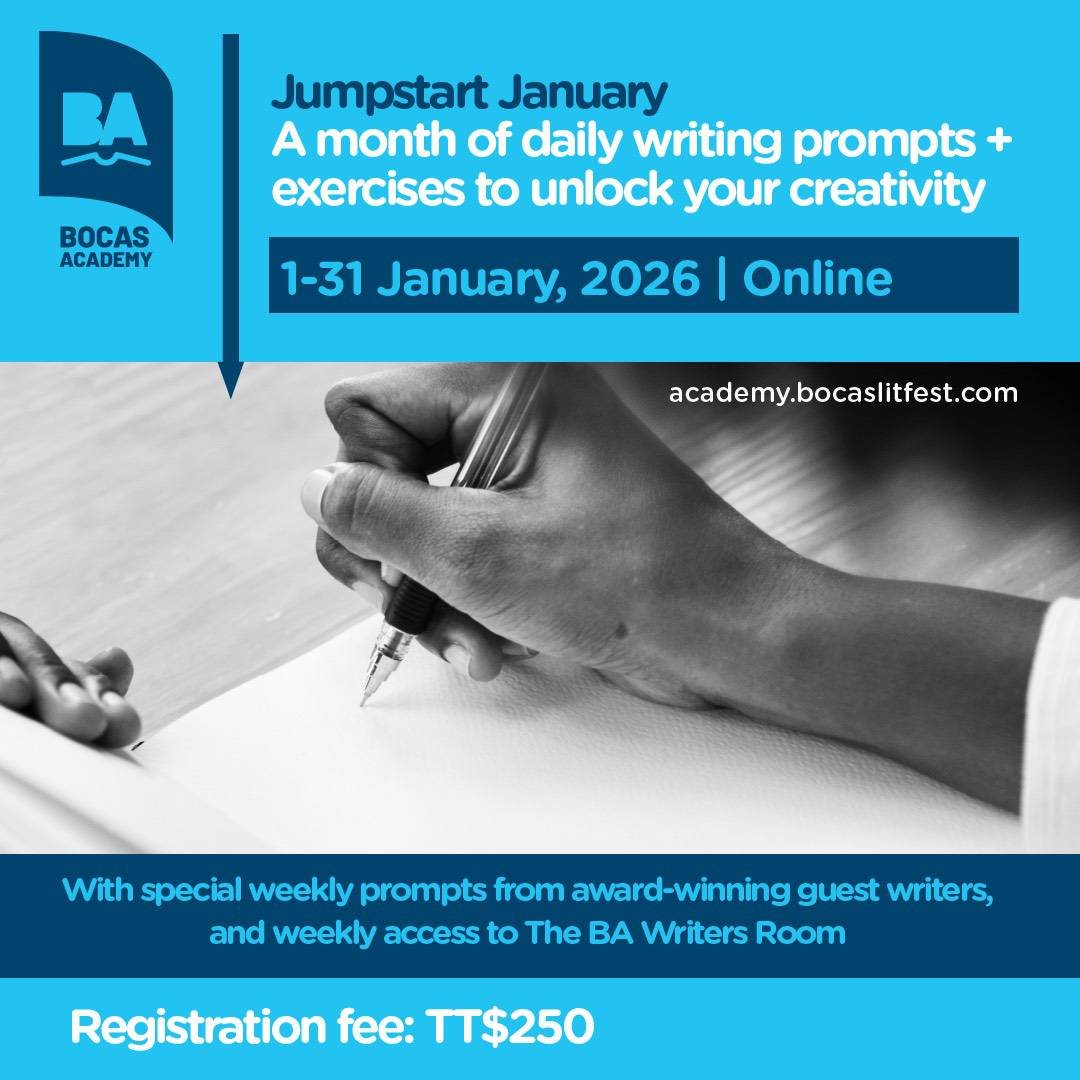 Bocas Academy, the comprehensive learning hub of the Bocas Lit Fest, has announced its offerings for January and February 2026. Prose writers of both fiction and nonfiction can flex their daily writing muscles with Jumpstart January, a full month of writing prompts designed to summon creativity. Prompts will be delivered via email, and include special words of encouragement and tailored exercises from award-winning Caribbean authors.