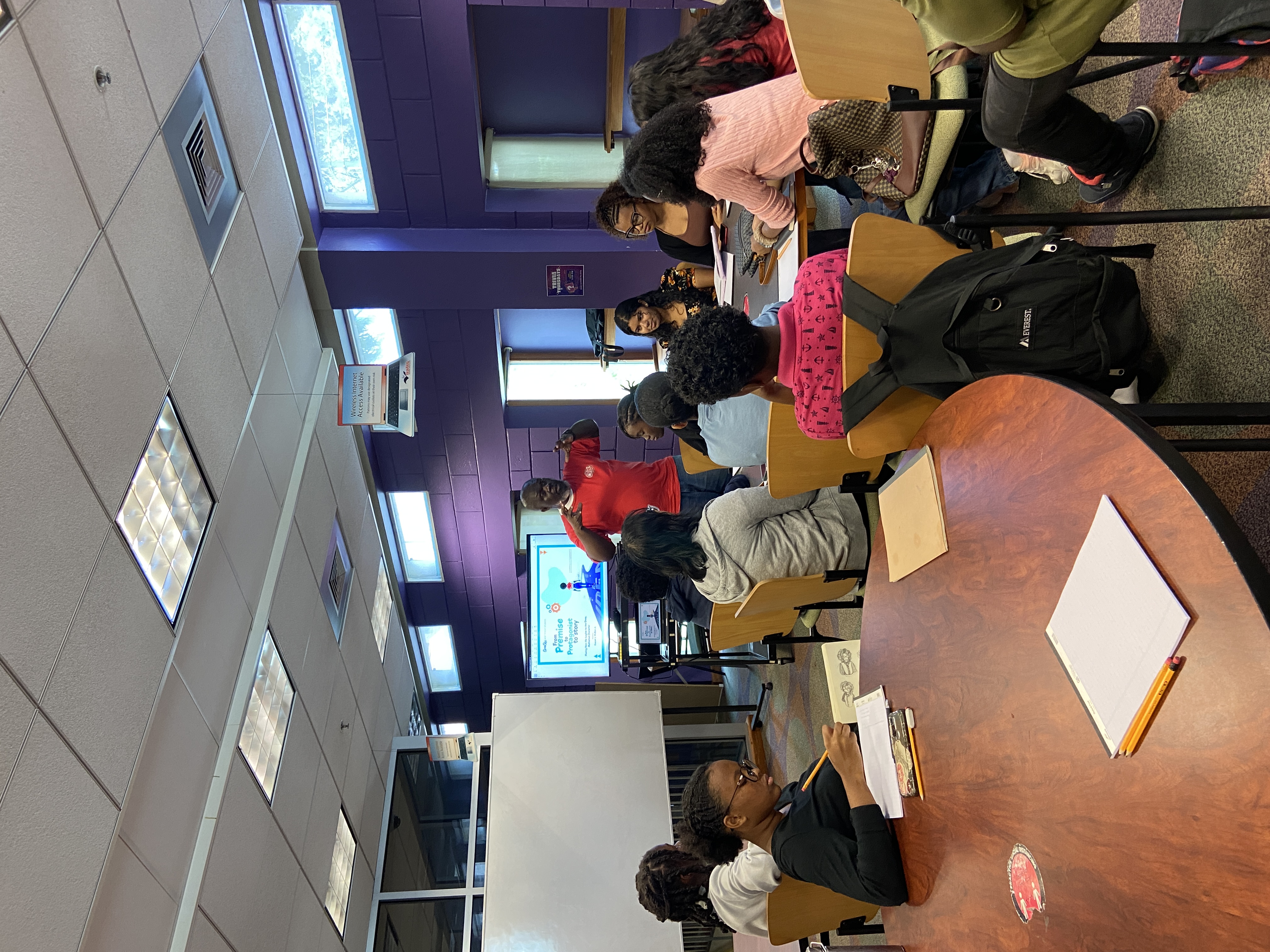 Creative Consultant and primary workshop facilitator for the project Everard McBain led the dynamic session, ‘From Premise to Protagonist’. The teens were engaged and articulate, offering intelligent and creative graphic novel story ideas about dystopian futures, worlds dealing with the fallout from improper use of AI and cybernetically augmented humans.