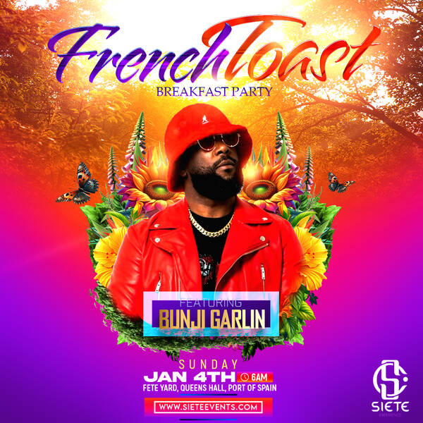Siete Events is setting the pace for Carnival weekends with French Toast: The Breakfast Cooler Party, a premium brunch-meets-fete experience taking over the Fete Yard at Queen’s Hall, Port of Spain, on Sunday morning, January 4th, from 6am. Designed for early risers who like their mornings bold, the event blends stylish brunch vibes with coolers, cocktails and high-energy music, headlined by a live performance from Bunji Garlin. Under the creative direction of Siete CEO Gleeson Job, French Toast reflects the brand’s signature ability to seamlessly merge luxury, culture and pure party energy — setting the tone for a Sunday that starts with breakfast and effortlessly rolls into full Carnival-season revelry.